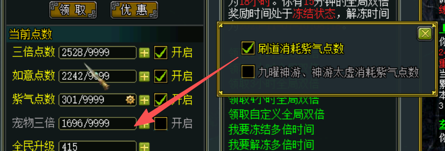 宠物三倍点数 可以增加刷道和升级 设置!!! 跟紫气一样可以设置点数!!!照目前来看 宠物三倍大多数都是升级用的!!刷道都不会开宠物三倍点数