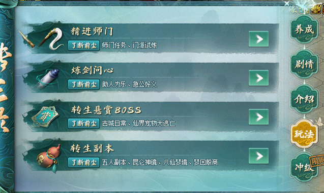 其他的比如助人为乐、急公好义、副本任务、昆仑神镜、八仙梦境、梦回殷商、师门任务……之类的,可以通过了断前尘完成的,建议往后排