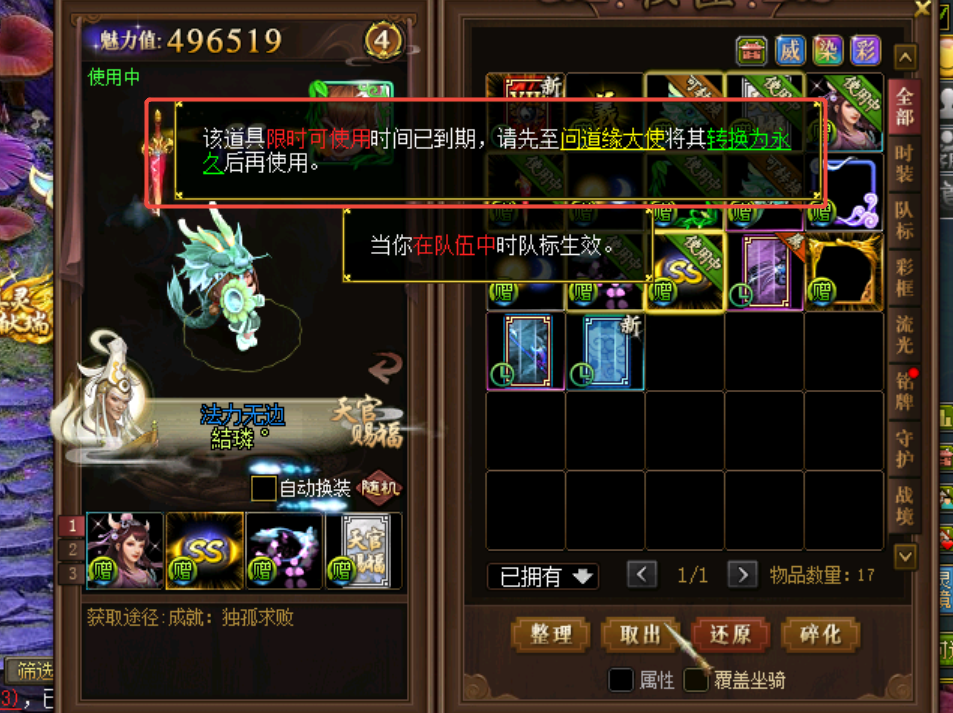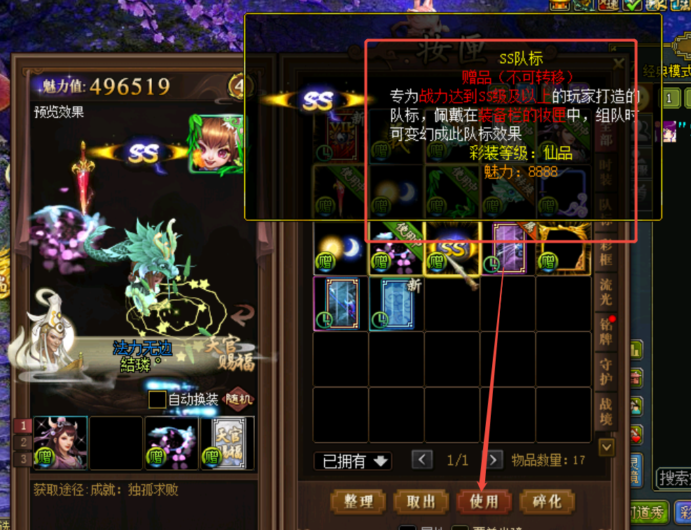 角色使用后可以穿异性时装 这样即便夫妻队也能穿同款时装 这样看起来整整齐齐的,增加游戏趣味性