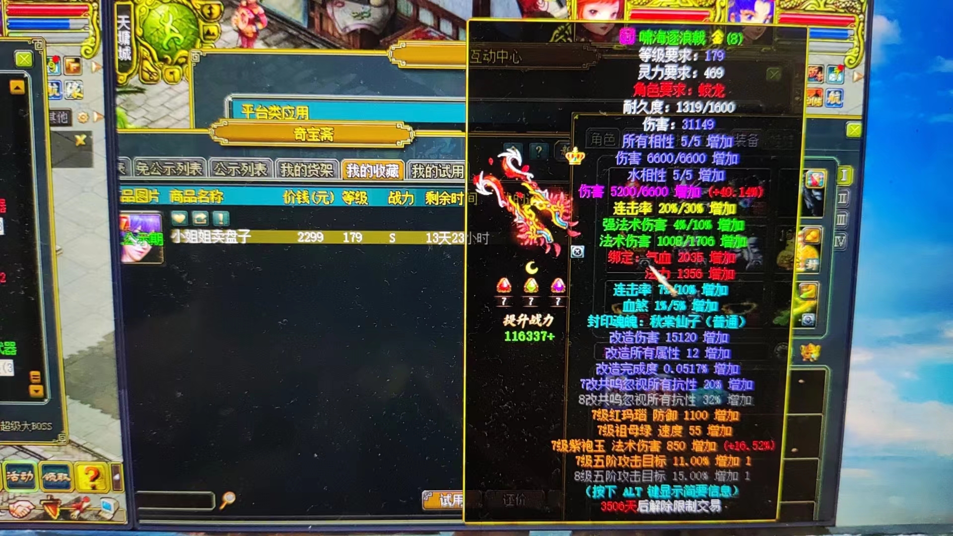 改8武器宝石7级,悟道8满,6.5万道,赤精子,才2299