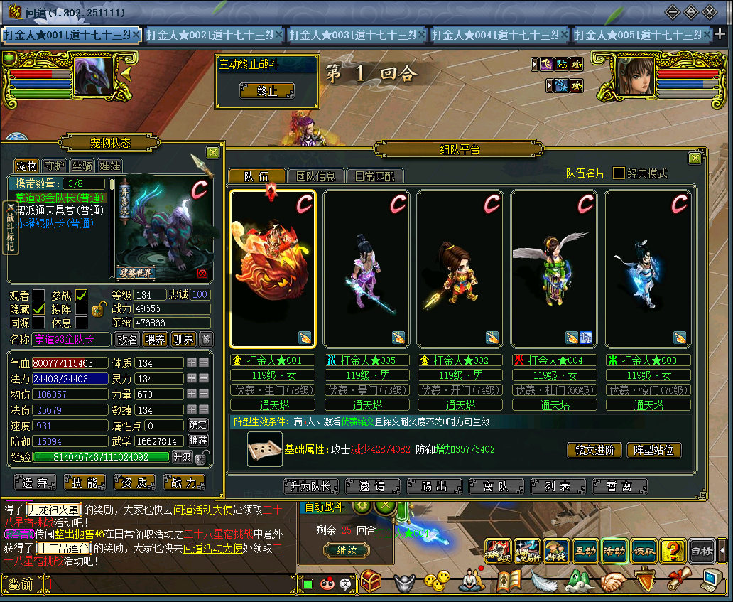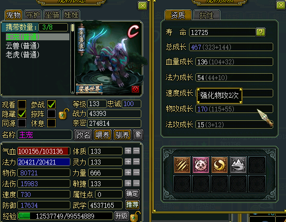 人也到C战力了,BB也做到10万物伤了!还整了5+1押镖哦!我的青春啊!爱玩问道,我要玩到老~