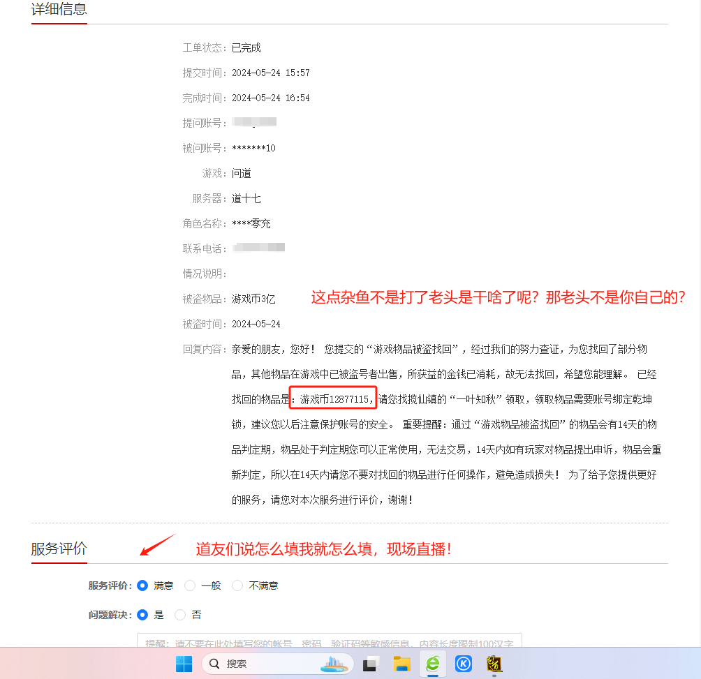 明明是你策划内的游戏玩法消耗了我丢失的游戏币,但是你给我说所获益的金钱已消耗?那你就不能一起整条链路找回么?假设他买了坐骑,装备,首饰等物品,根据整个交易链路全部退回不就完了?