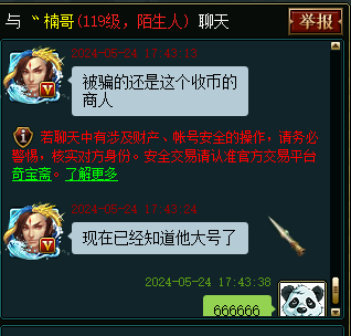 比如:受害者A,损失了物品及游戏币,极盗者B,通过摆摊,交易等多种渠道,非法获取了A的物品和游戏币,无知者C通过摆摊,交易等渠道获取了物品,或者游戏币。此时受害者A发现并及时处理,则不仅追回B处剩余财物,且根据链路追回C处物品,即本次行为中AC皆为受害者/无知者,AC皆需要去“一叶知秋”处领取本属于自己的财、物。