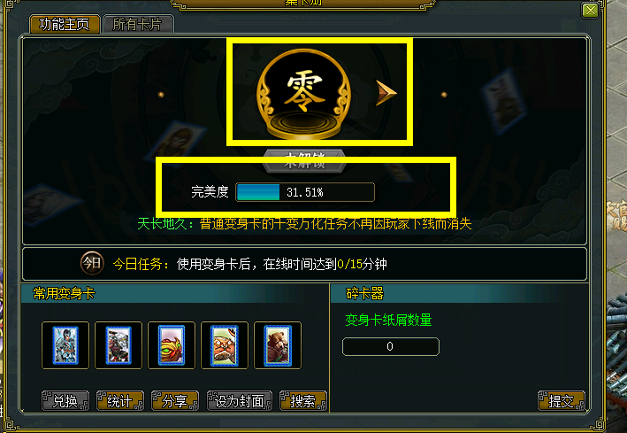 集卡册,想要提升等级,从零级到五级,大前提是,完美度达到100%。