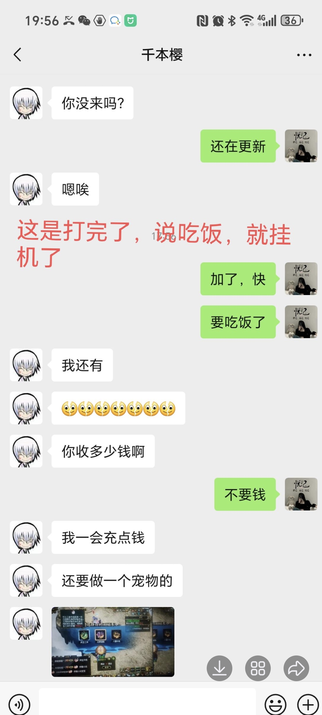 下午5.56分游戏更新好,带他任务.120级的剧情,我开了2个179的带,几分钟不到就过去了,群友要给我钱我没收,然后就去吃饭了