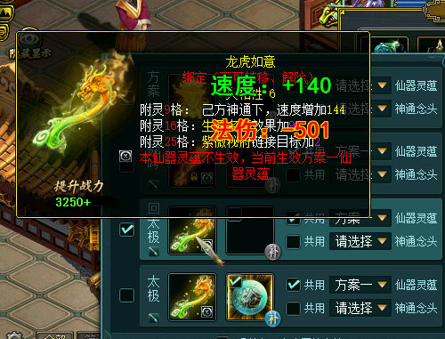 体属性(体加点729,敏加点274) 由金仙器切换到火仙器,仙器属性都加144 速度 ,加上6点火相,至少200+速度, 为什么实际才生效140