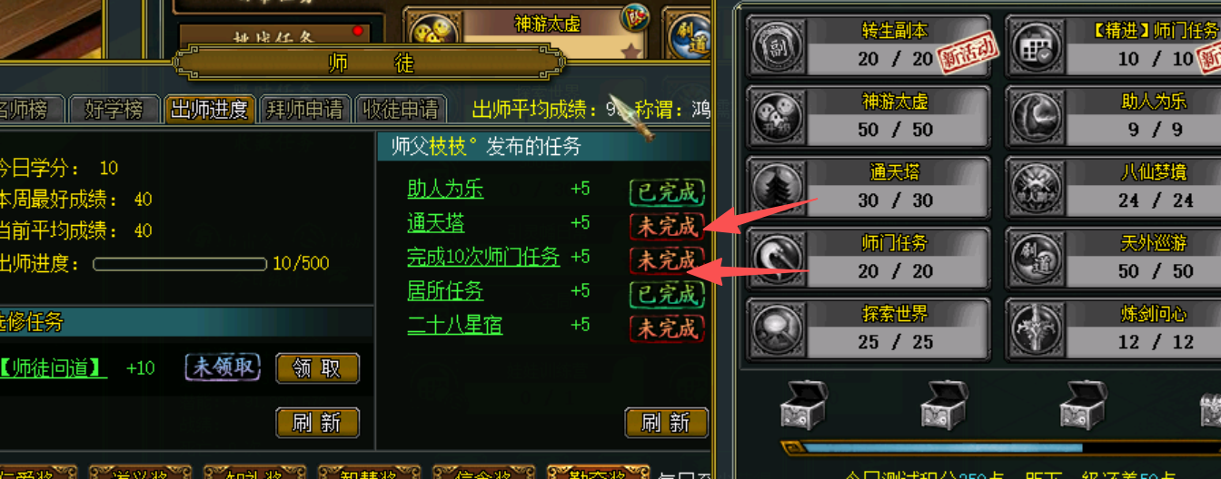 师门任务是转生直接领的。其他两个没有完成有点看不懂