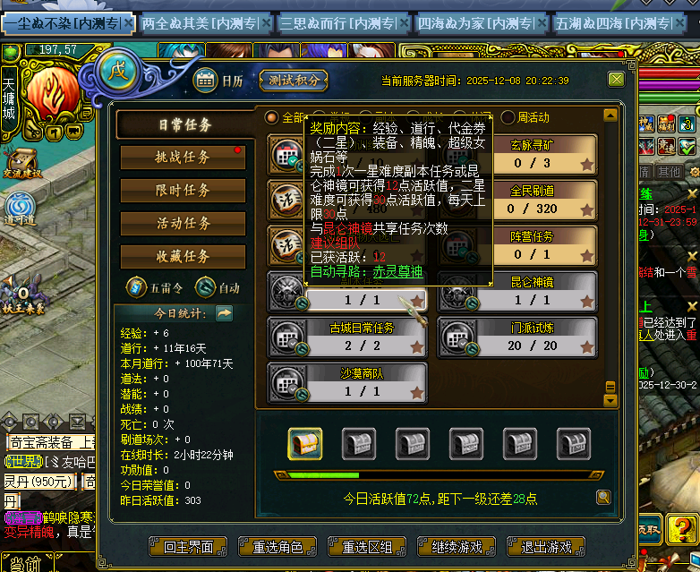 上午打完五行归源活动栏还是未完成状态,也没给积分