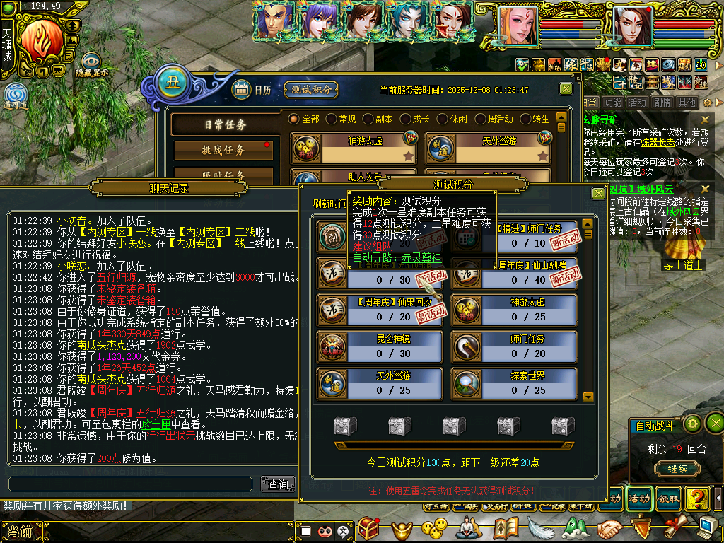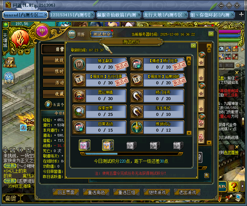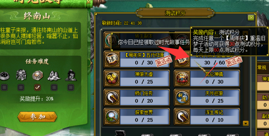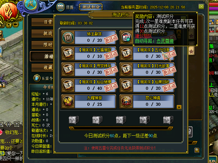 打完活动副本没有测试积分