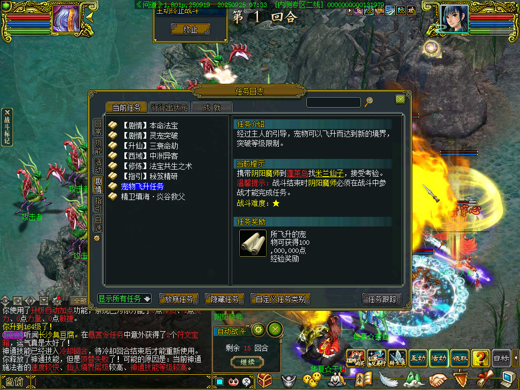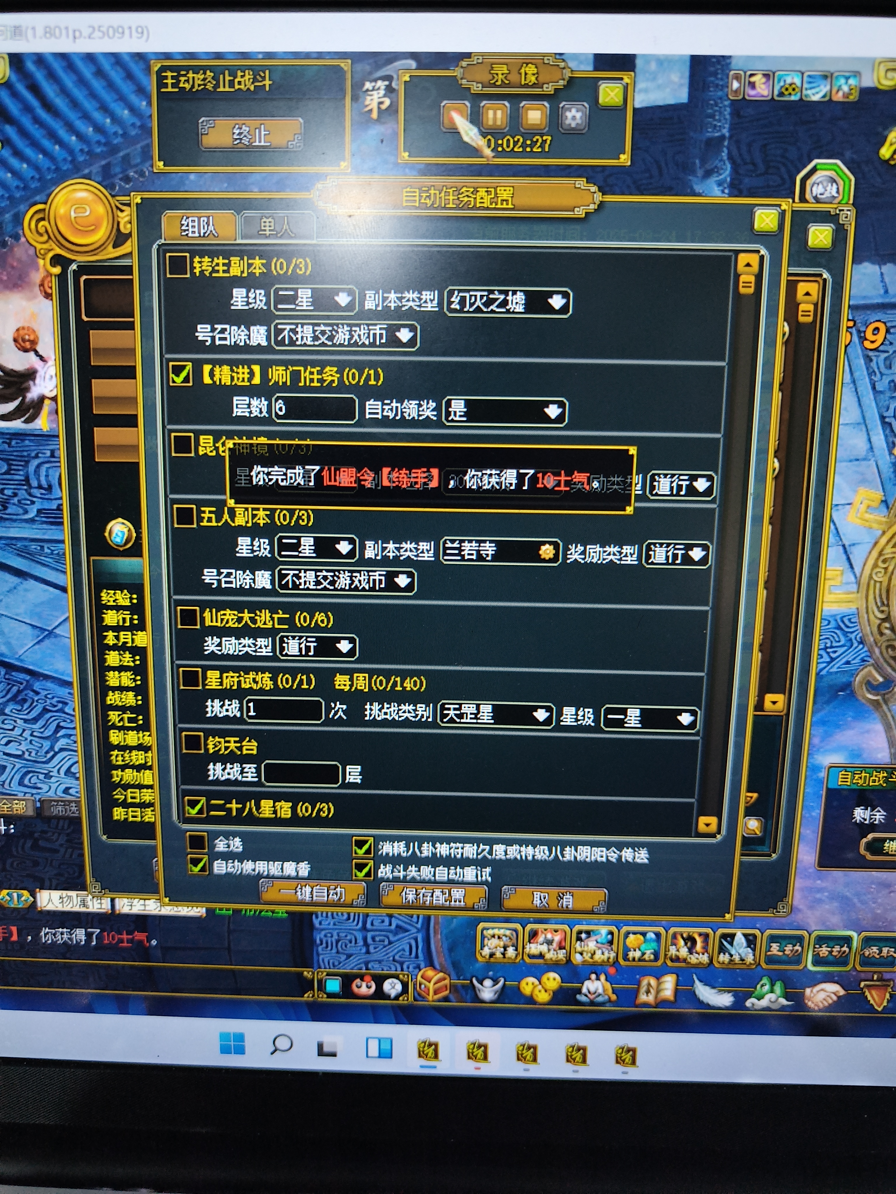 设置设定了寻路优先使用遁术,一键自动任务,孔雀和兔子都是走路到十里坡再回去师门领取任务,有视频