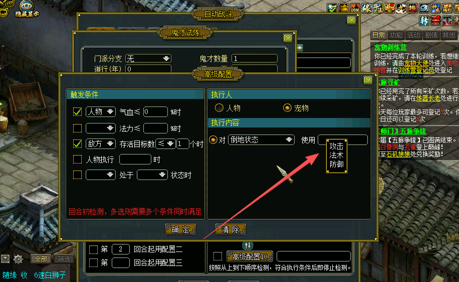 如意高级设置 只能在战斗中才能设置用药
