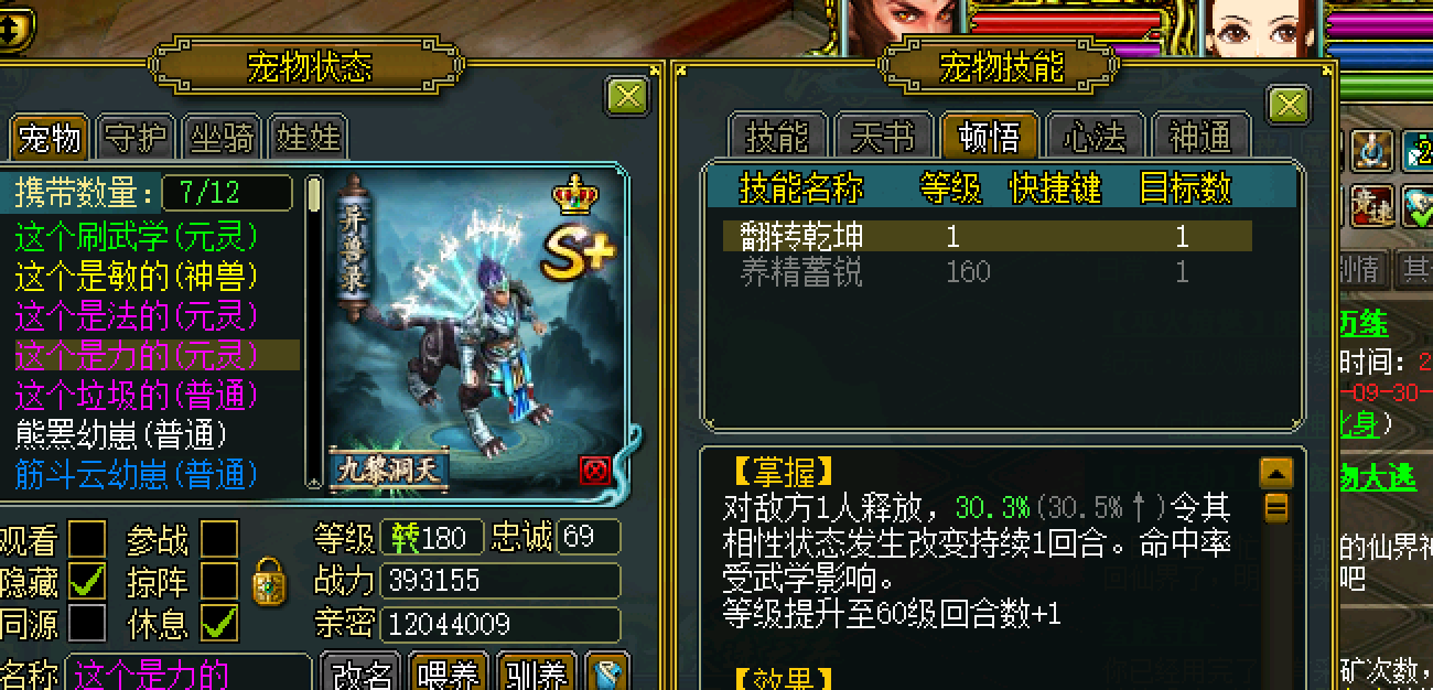 宠物神通不能转换给顿悟出来的技能吗? 我这个要转换给顿悟出来的翻转乾坤,怎么选项里面没有啊