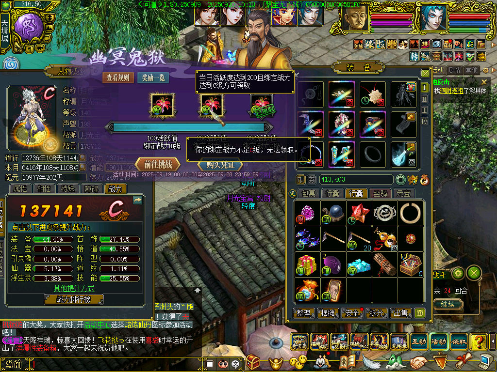 刚买的号就无法截图,道友说是被处罚了, 截图出现黑屏, 并且九转祥云丹 别的号可以吃两个/周, 这个号只能吃一个