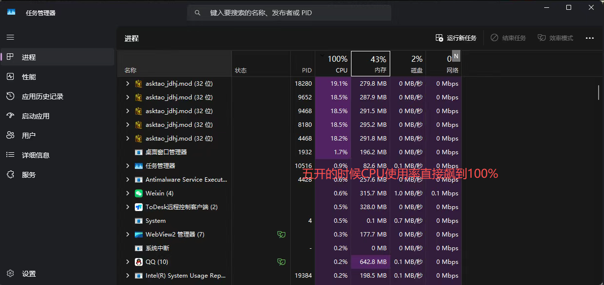 自从更新游戏以后,运行游戏后CPU占用奇高,队友的电脑配置还没我的高,但是一直流畅运行,能不能来个负责技术的老师给看看啊