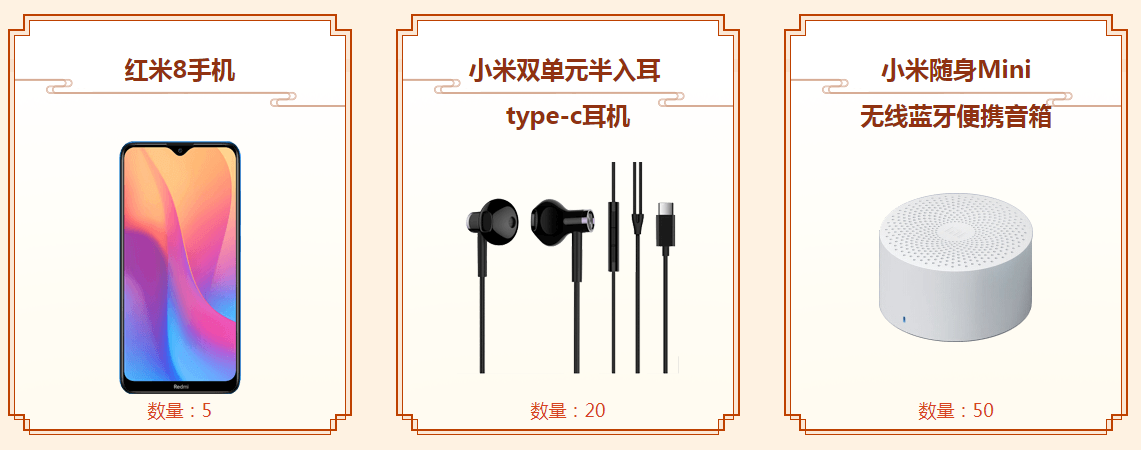 年度数字大服2020预充值大派送活动火爆进行中!阶段二累计充值100元抽奖资格的统计时间截止到12月25日23:59:59,奖励包括小米cc9e手机、小米蓝牙耳机air2代、小米方盒子蓝牙音箱2,大家千万不要错过~