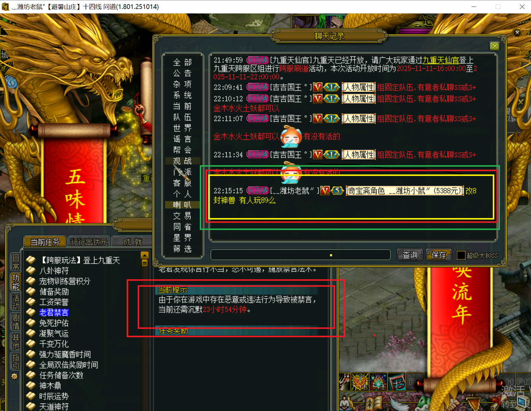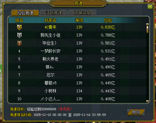 4. 本次活动为跨服队伍PK,以”本月道行倍数”作为衡量标准【本月道数据参考为:11月14日 12:00前最后一次角色登出数据】,等级段报名队伍满16支,即可开赛。