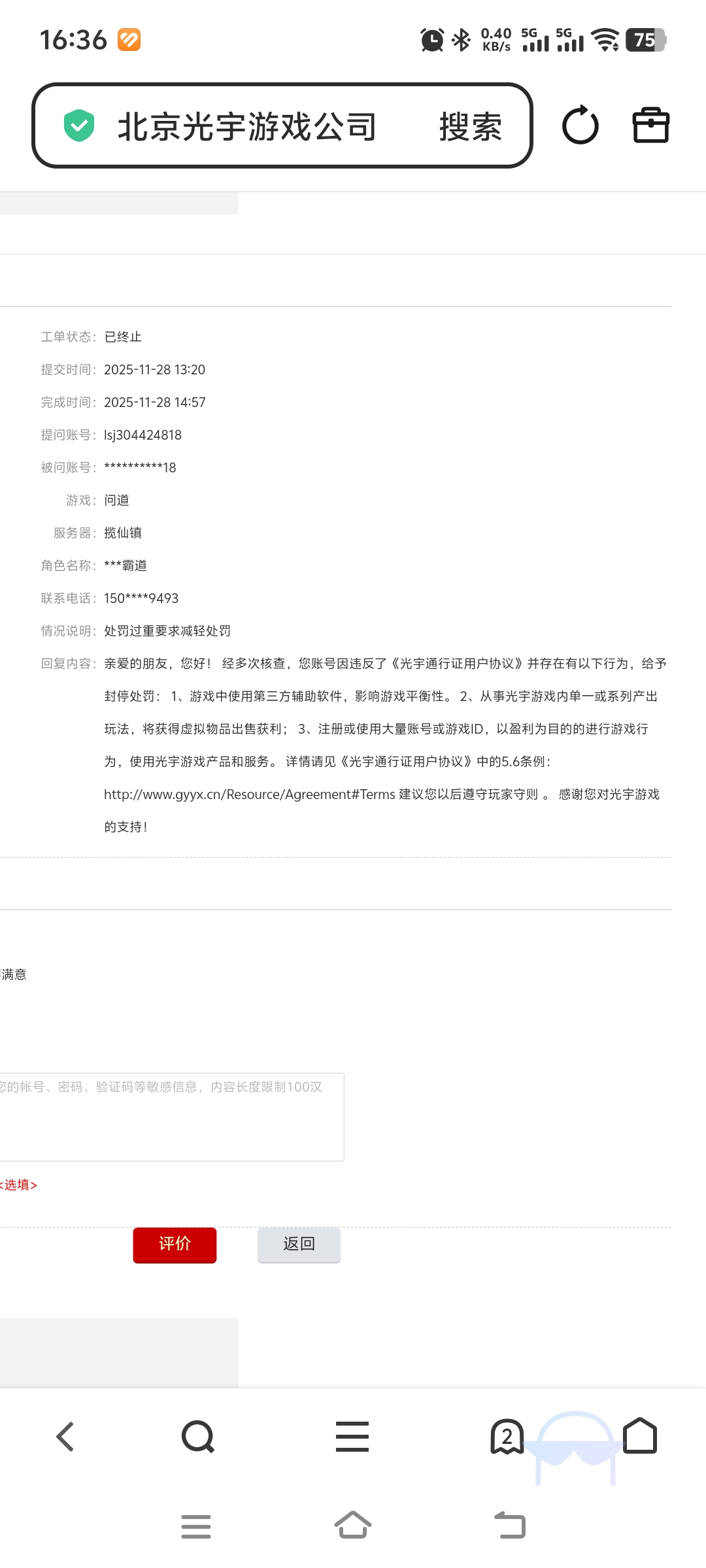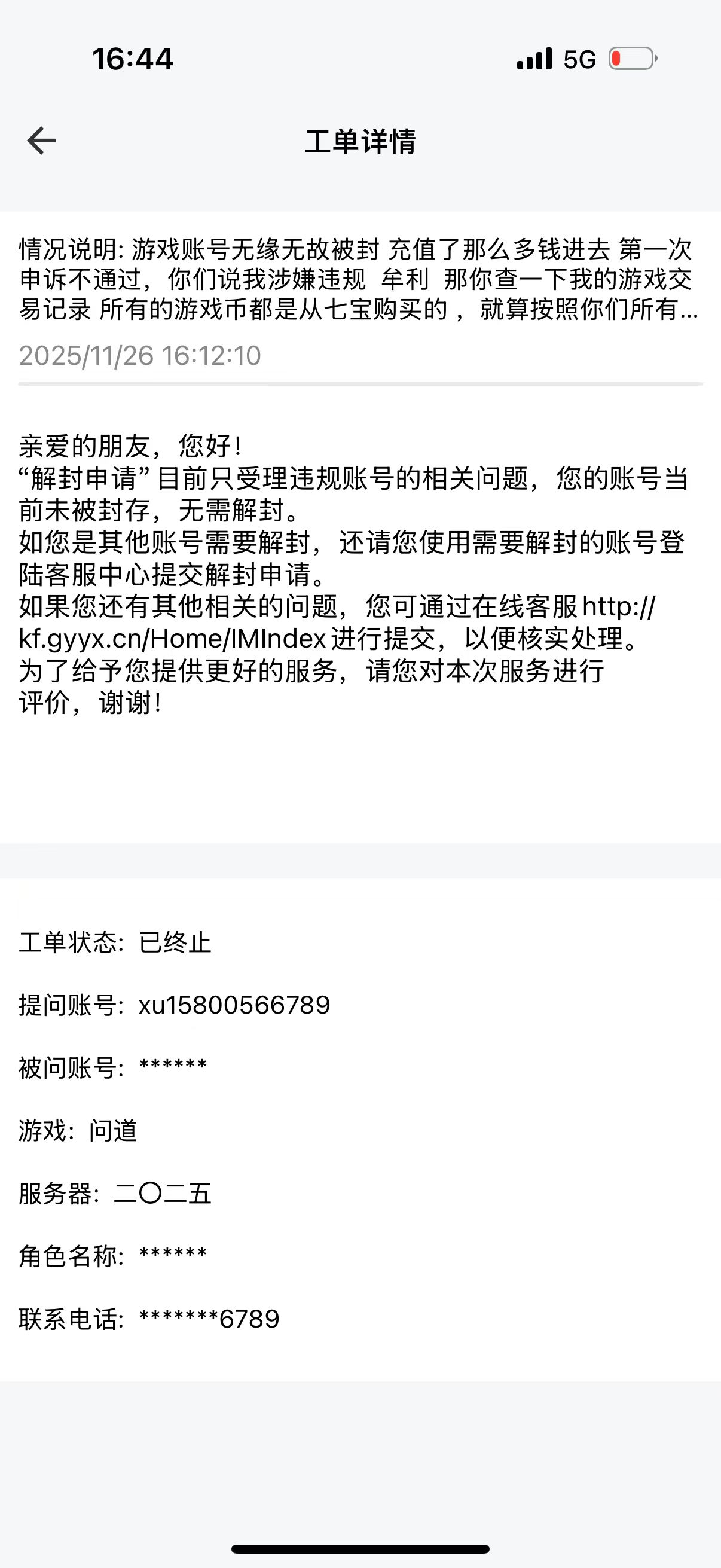 我自己养老队 。消费两万左右了。 突然五个号全部封一个月 我并没有开挂 没有对游戏有影响 况且第一次犯错 一个月是不是太严重了? 客服申诉 每次都是一样的回复 我问具体啥原因 还是一样的回复 问能不能减轻还是一样的回复 根本给人的感觉就是系统批量封 根本不去真正看提交的问题 去耐心的核实数据。