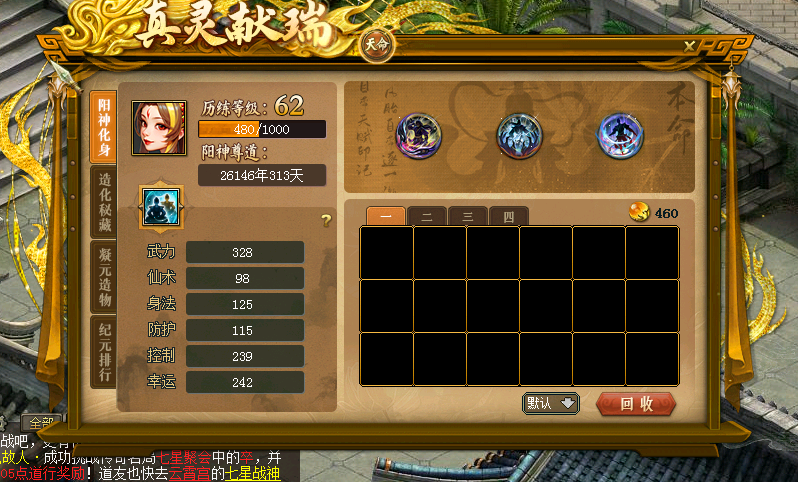 这个新改版悟道1234栏的按键能不能搞大一点,管方,太小了……然后人物识界什么时候开通下一层,我混元9一直在那停着睡觉😪……最后建议早点开放道纹最后2个格子……6个道纹不够。我想消费,我想消费,感谢策划和官方。