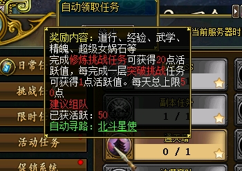 正常来说,通天塔,只要打的超过自身等级的层数,就已经算是完成了,今天不知道怎么的,他都已经显示获得了50点活跃了,还是未完成状态,不知道这是遇到BUG了,还是其他什么情况,道友们,你们遇到过这情况没?