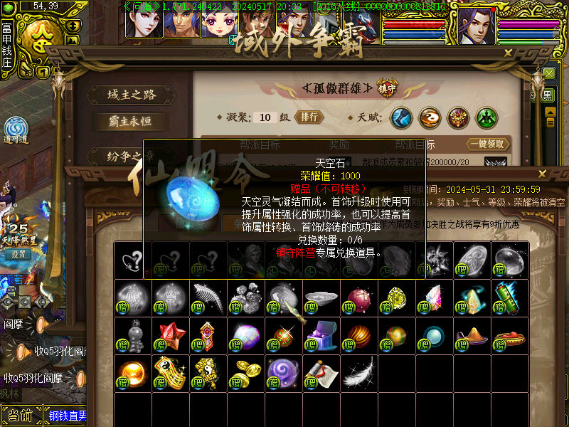 ,加入帮派一个多月了,本月帮派成为了镇守帮派,为什么我的5个号不能换取镇守的物品?!而另外五个号却可以?看不懂的规则