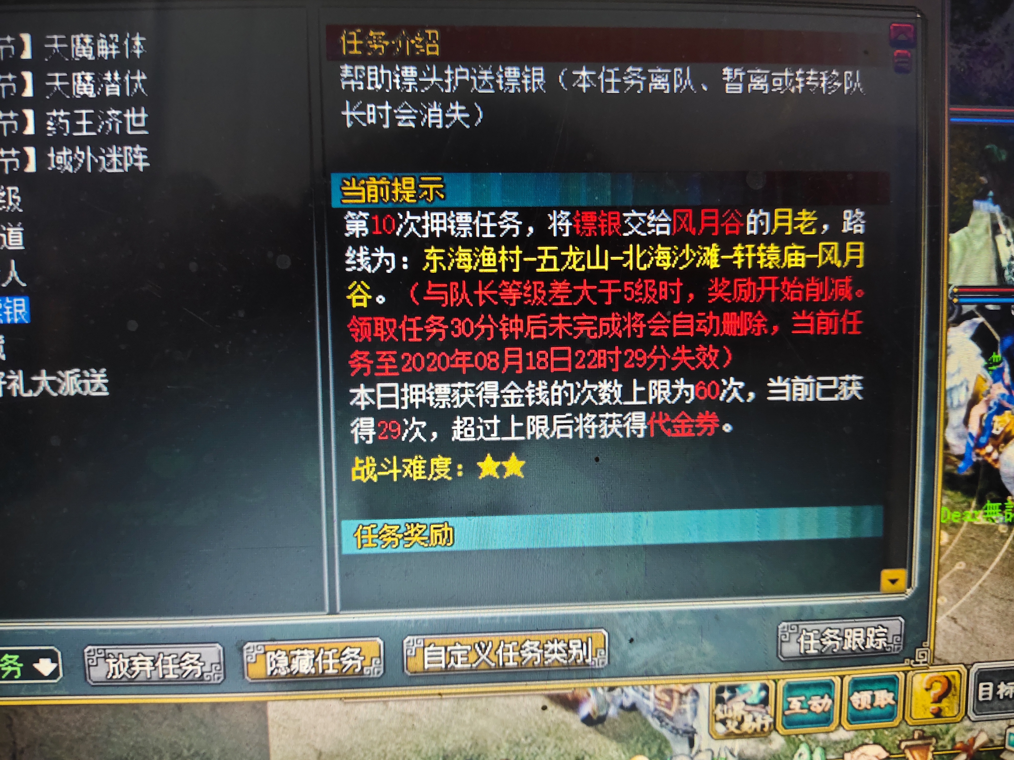 今晚上线看到避暑有人说做了68次,看到任务次数了。