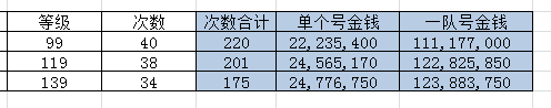 我130级每次一回合出手3-4次,每次押34次,大概2400w