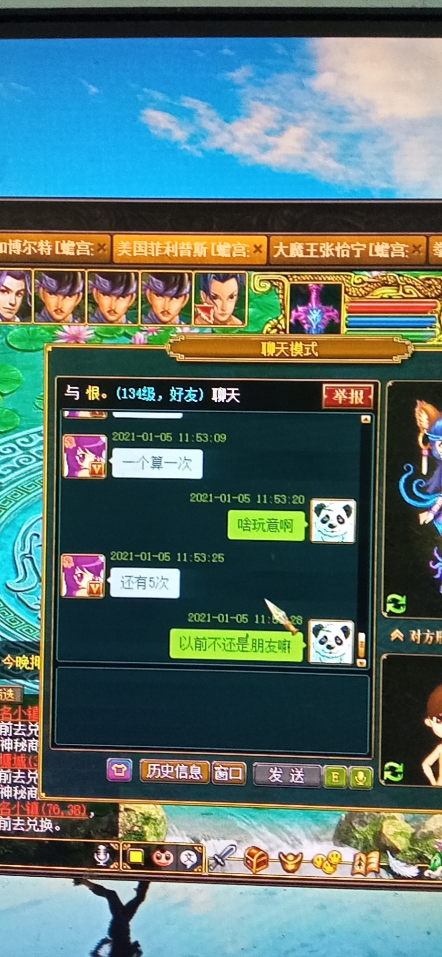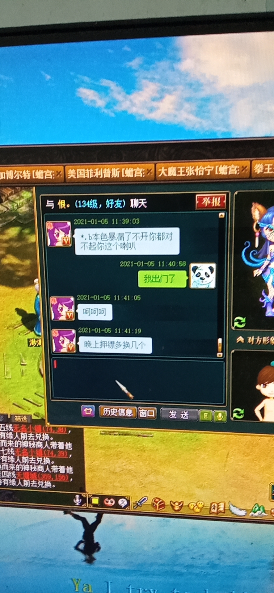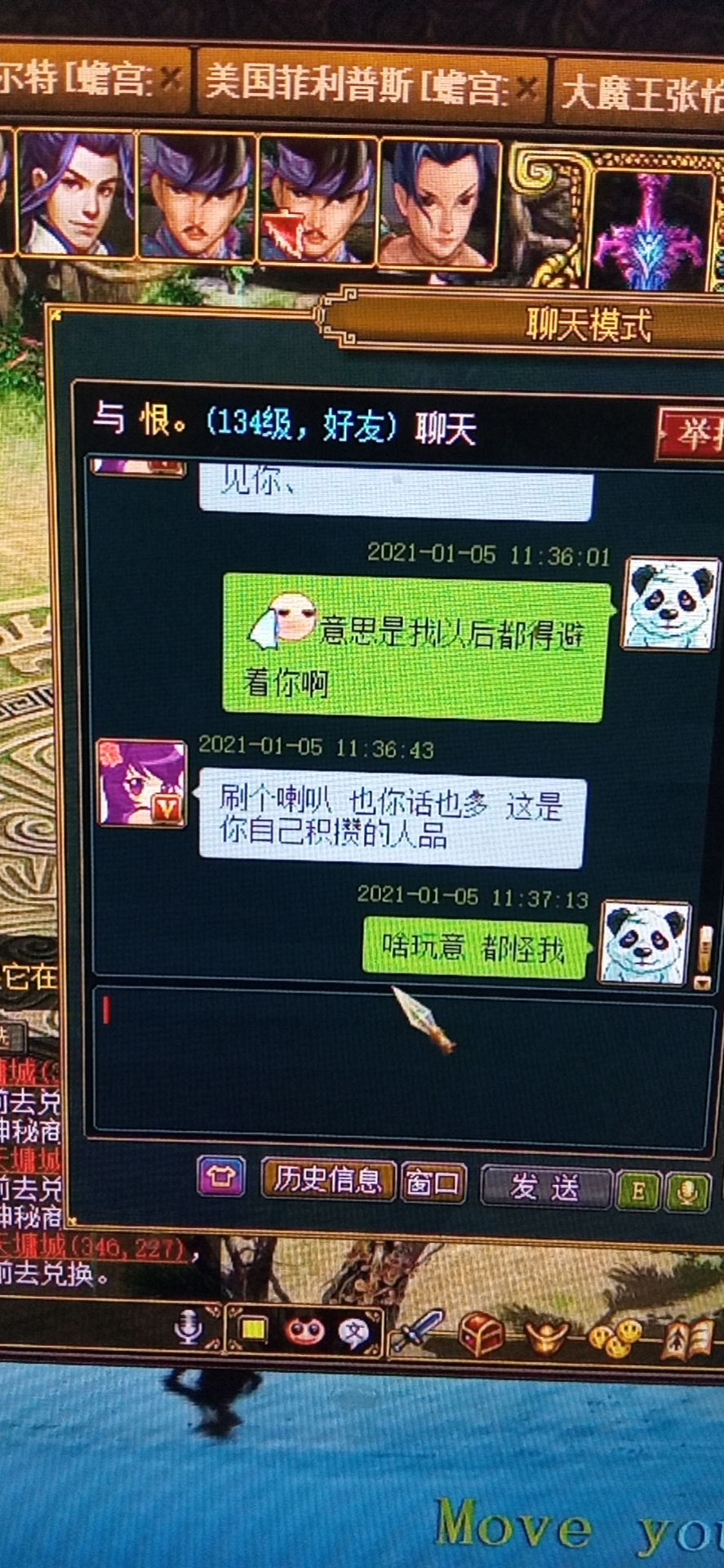 我之前不就是野外的原因被人卡押镖嘛,他就是最后几分钟不卡了我也去押最后一次镖。卡了2次就不来了,等他卡结束你立马去监狱里看望他,顺便截个图**坛里。再看看赎人要多少钱你心里就舒服了。