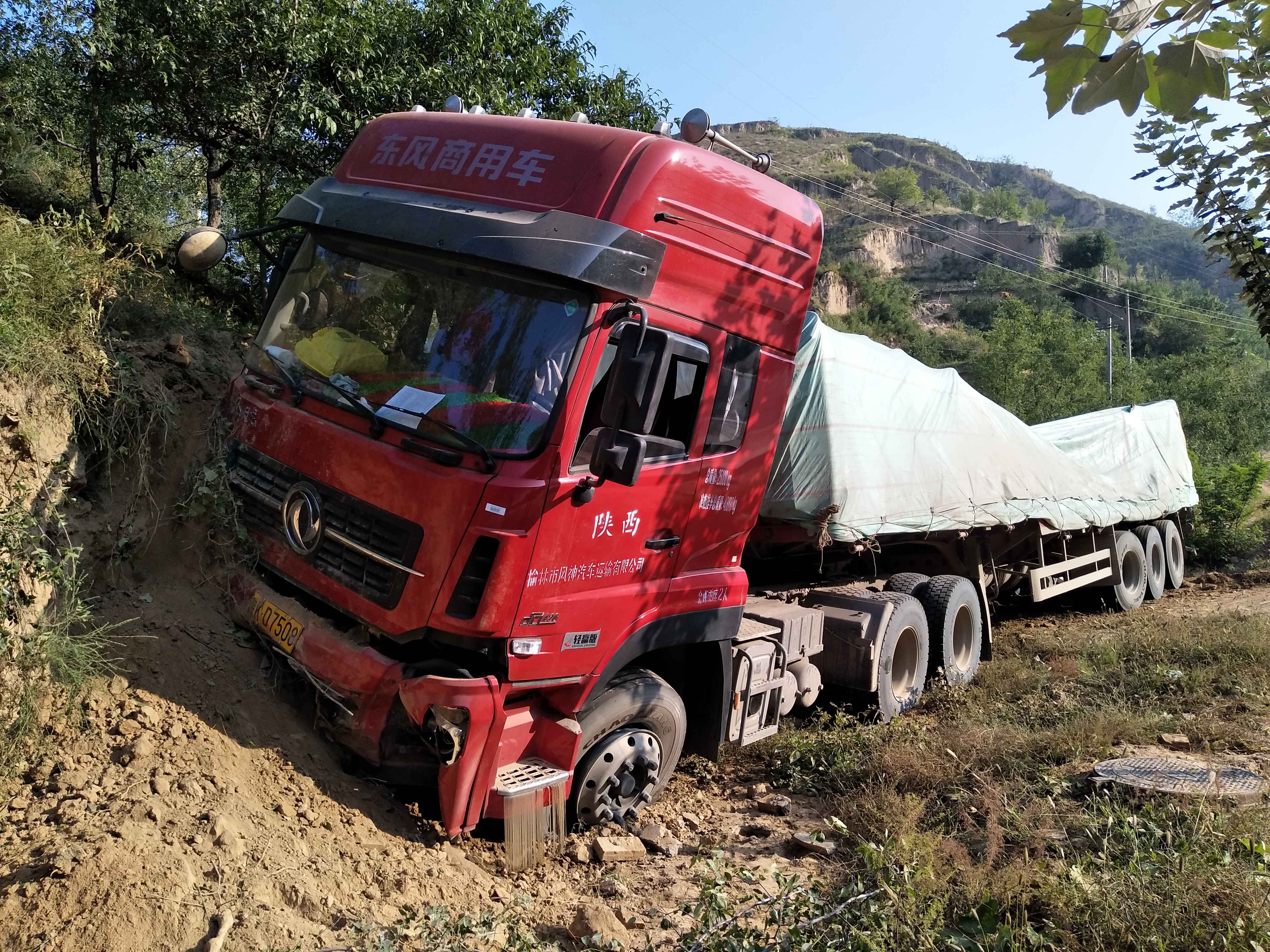 从北往南开的,下过雨,地滑……滑成了东西方向了……看着大路近在咫尺……可是开不出去了怎么办