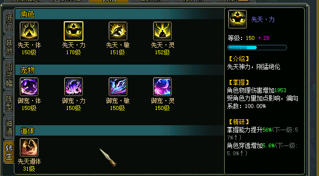 目前只开到转生100,所以转生技能最高只能点到200级。