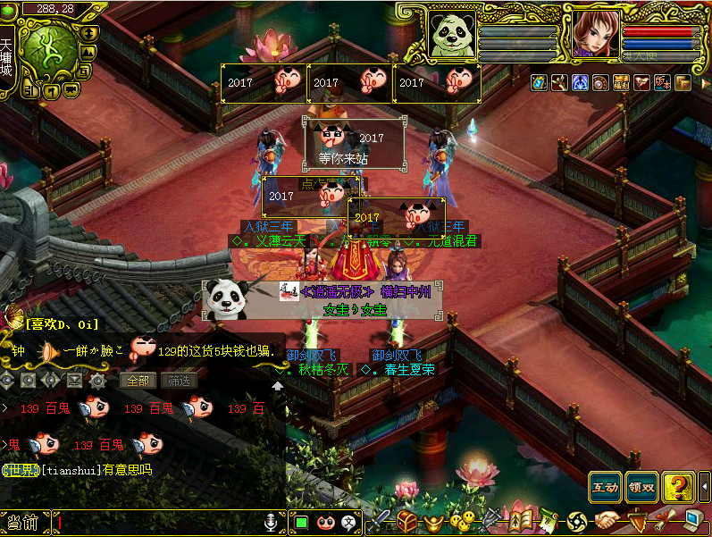 ◆。春生夏荣:玩问道10年多了,以前一直在橘子,最后又去了2012,最后听说2017妹子多,我这一寻思,2017这么好,资源又多,干嘛不来。