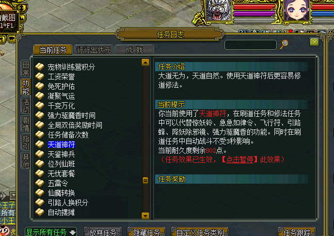 建议刷道时 可以选择使用天道神符或者全民刷道点,想用天道刷道时 老是把全民刷道点领多了