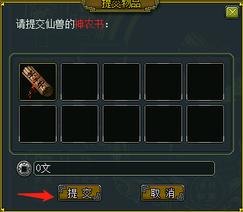打开互动中心的,异兽熔炼,界面后,提交,你需要或者你喜欢的神农书,集齐神农书中需要的道具,就可以召唤出相应的变异。