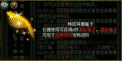 在挖宝中,有几率获得,特级异兽躯干,一个顶6个。(图片来自网络)