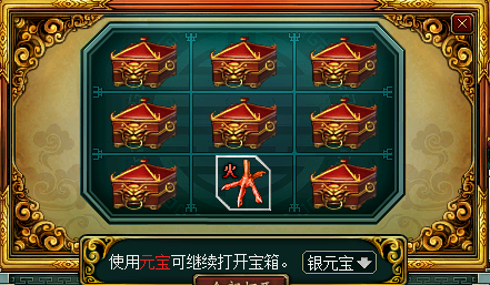 使用2400元宝,可全部打开,右下角可以选着,用金元宝,还是银元宝,因为九妹比较穷,一直用的银元宝。