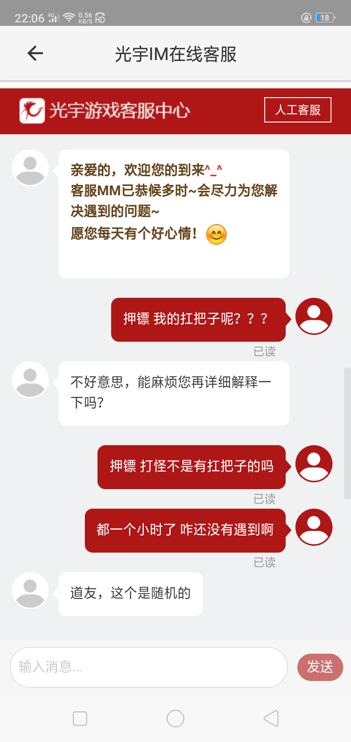 G,M 我的扛把子呢???今晚押镖咋就没有遇到扛把子 这是客服给的解释