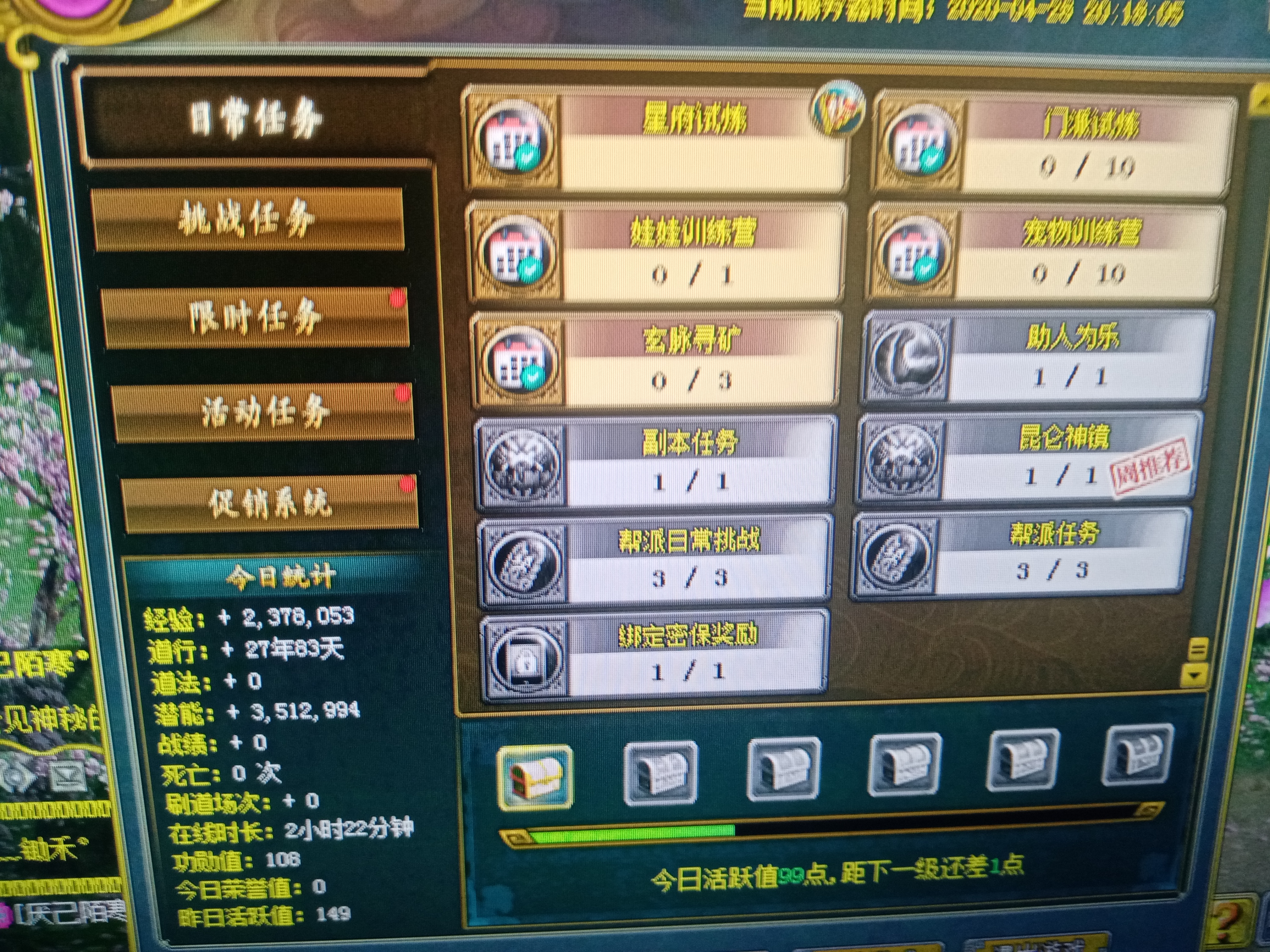 吹吧,这月刷道快20小时,每天二三百活跃度,还差点点4倍道