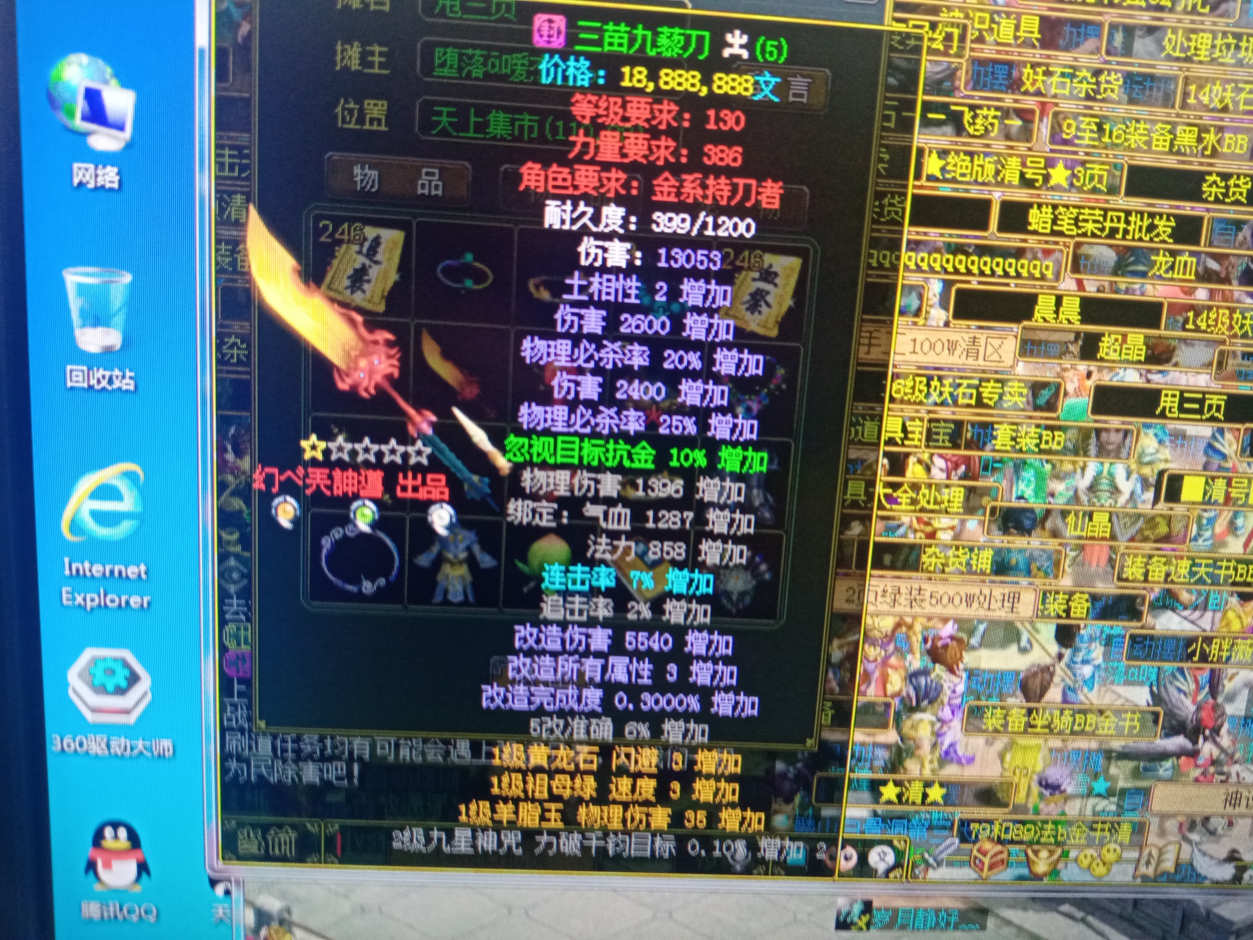 刚刚淘到的,天书强击2:1能赚1个亿左右吧。顺便买了把大刀