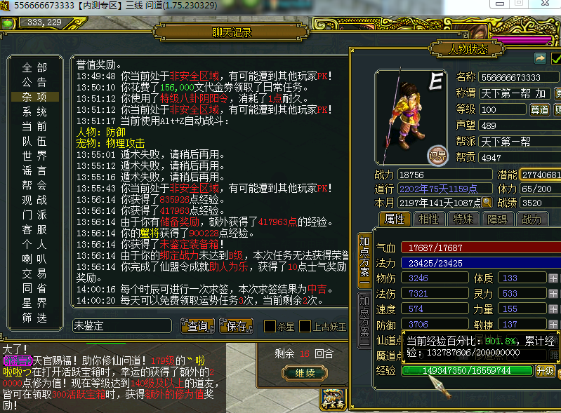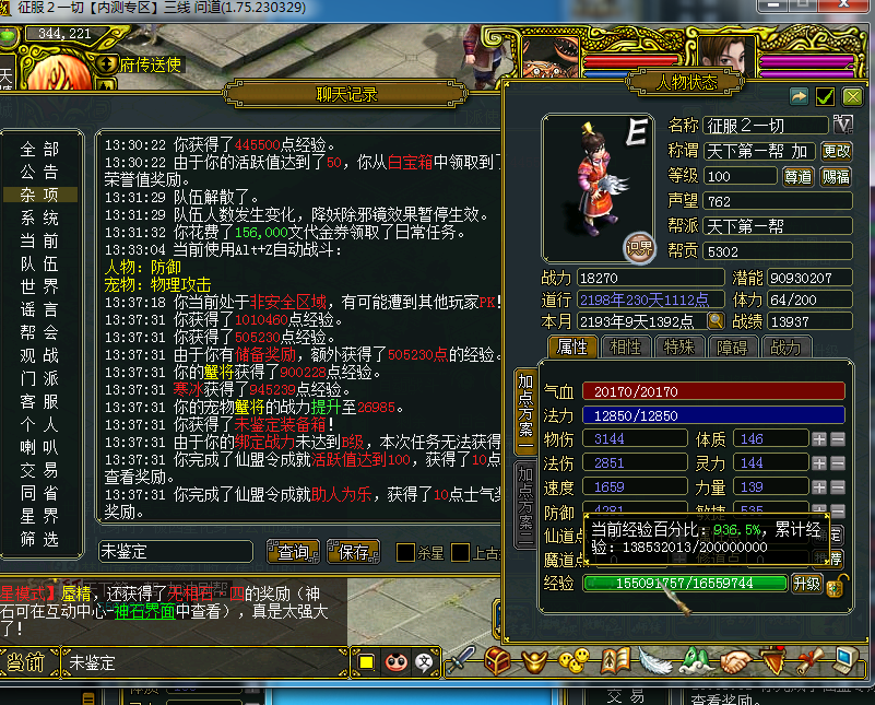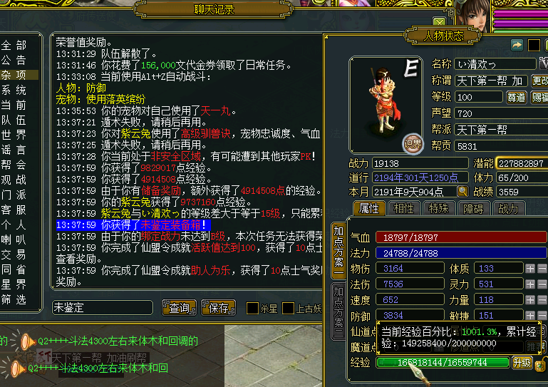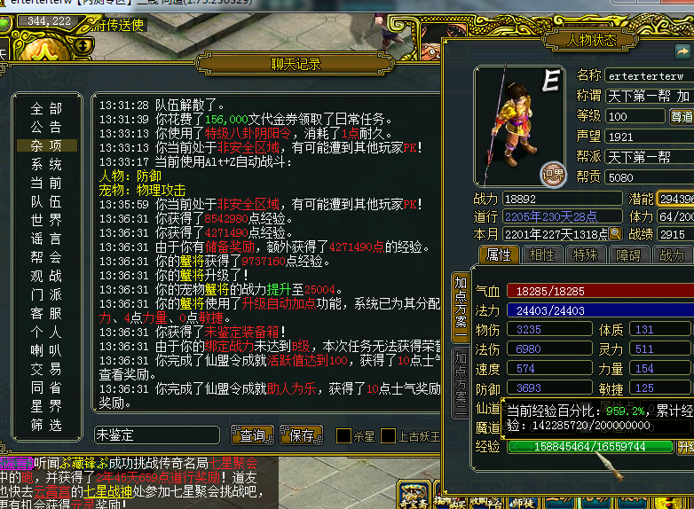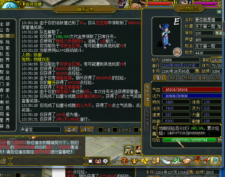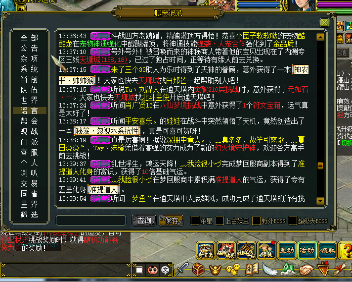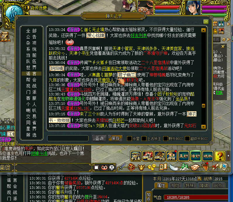 五个不同但是等级一样的角色完成白帮忙二星任务后给予的数值奖励异常。首先测试的五个角色都为100级完成后都选择的是领取原有奖励,没有花费代金券领取额外奖励。且都没有领取时辰运势的30%奖励也没有其他任何关于白帮忙任务的数值奖励增益任务。五个号其中三个获得的经验值为101万,96万,83万。这三个的相差不多处于正常情况。但是另外两个分别是982万,854万。看相差的数值应该是获得了十倍奖励导致的。但是翻找同时期的系统谣言页面并未发现这两个号的谣言提示。在这两个号的所有频道搜索也未看到获得十倍奖励的提示。