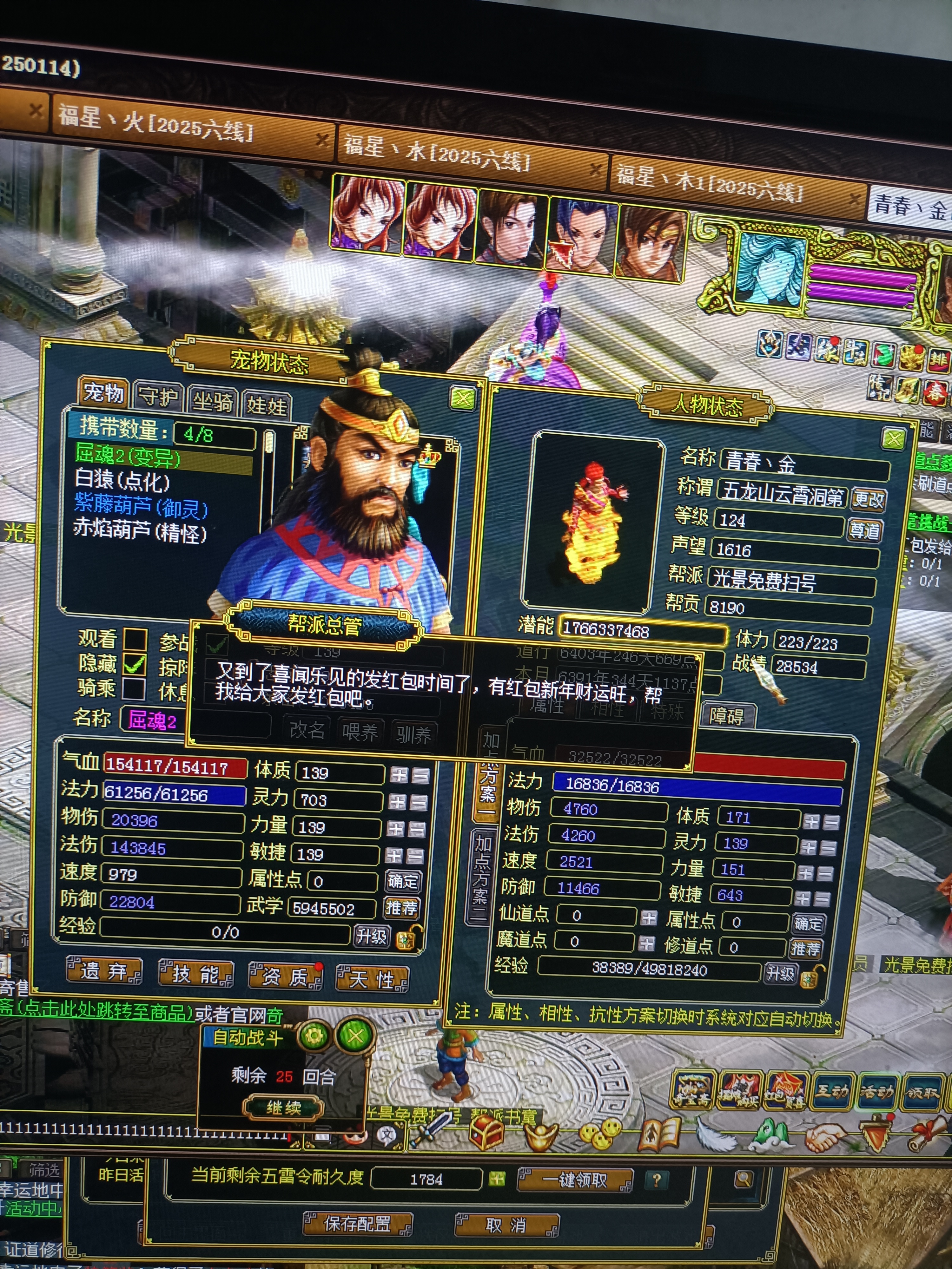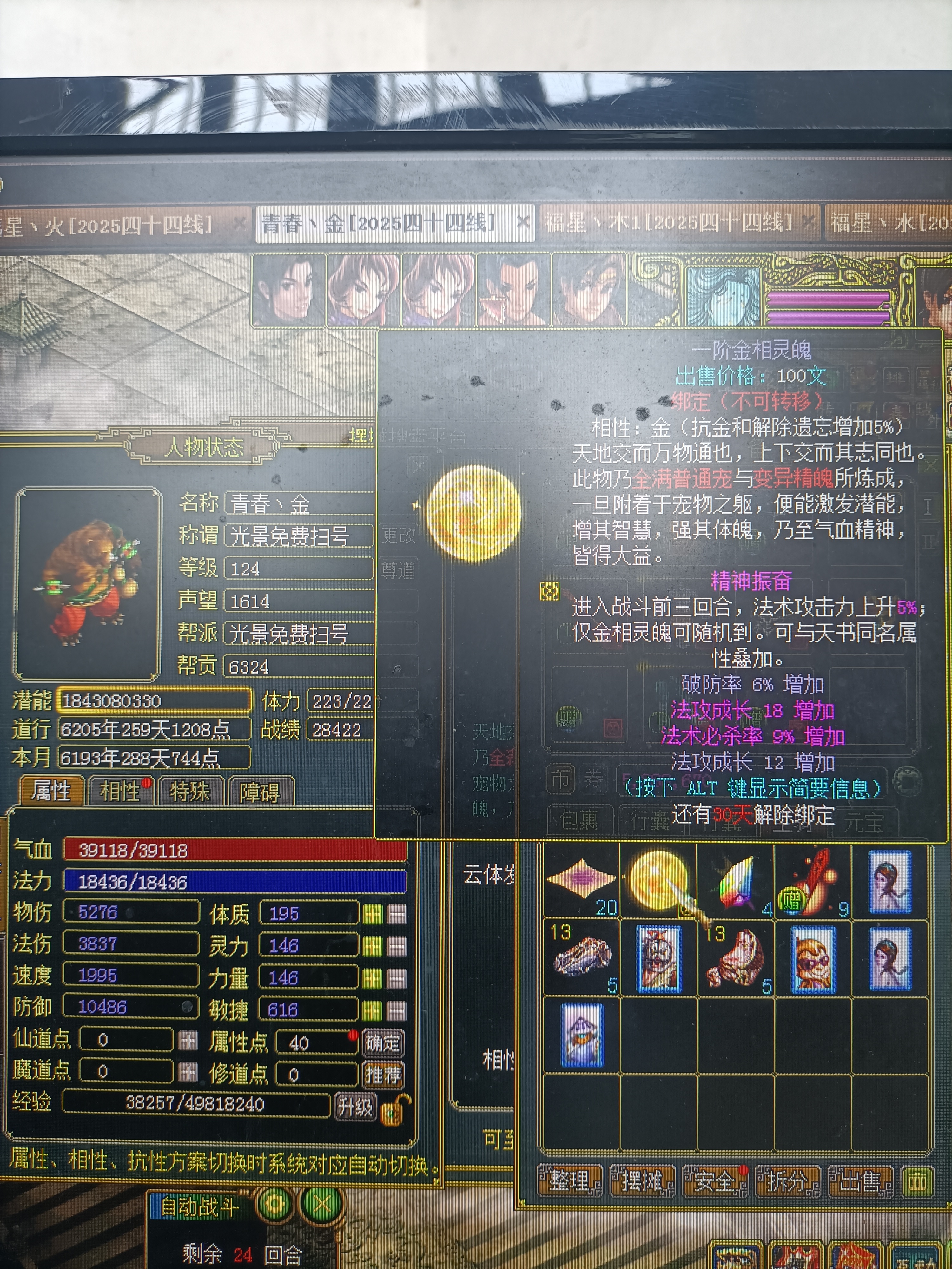 新区第二十四天,今天没占到妖王线,心态有点爆炸,就差200年就四倍道了,有点激动,等不及破四象升130,领银子点天性了。我发现现在经典服不太行了,才开区24天,货品超级神兽丹才只能换59银子了,应该是工作室起号太多了,最后的结果就是货品东西换不了银子,2025估计3个月左右货品银子价值低,甚至换不了银子,但是没办法,别人说的好,工作室每个月开会员的钱都是大几万了,贡献比我们大。现在感觉双线跟经典都不行了,双线是比例不稳,经典是养成大减,就等过几年,策划又弄什么新区再好好玩。其实经常跑新区的都知道,经典新区神兽丹以前这时候应该是100多银子。